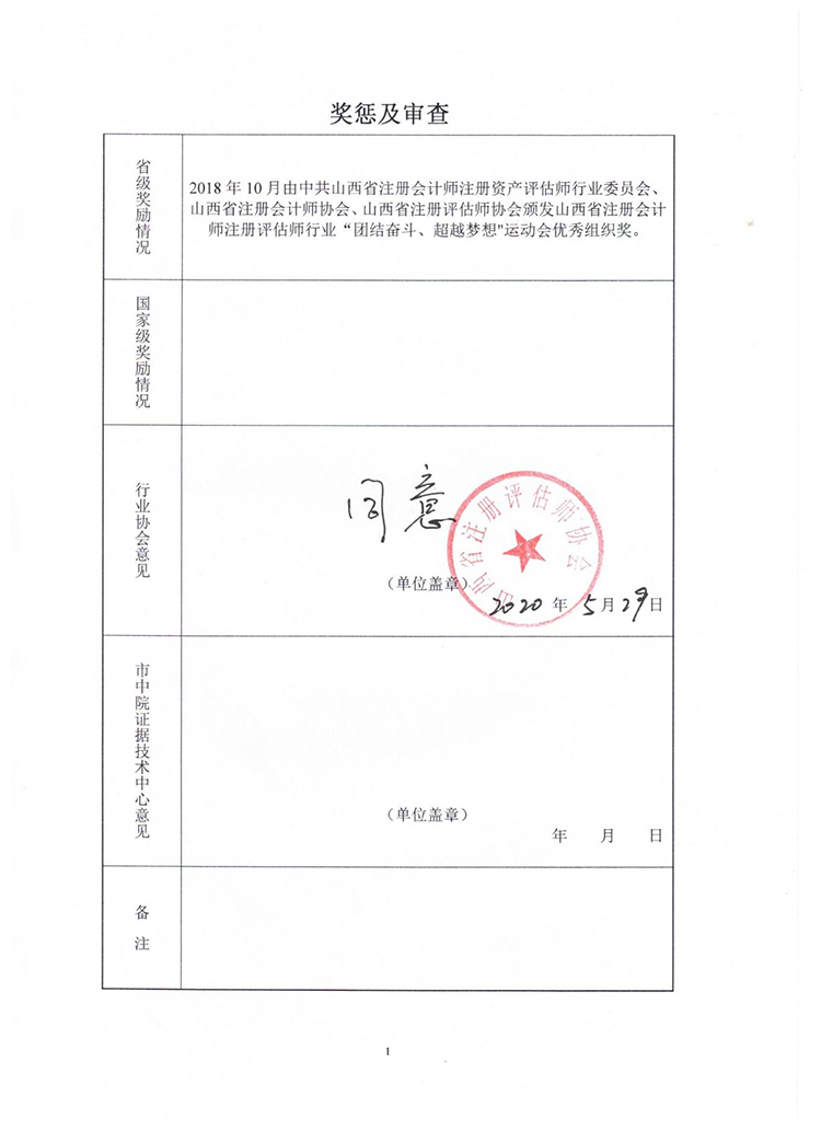 2018年8月,山西中仕德評(píng)估公司榮獲山西股權(quán)交易中心會(huì)員資格證書,成為專業(yè)服務(wù)會(huì)員;并獲得中華人民共和國國家版權(quán)局計(jì)算機(jī)軟件著作登記證書《中仕德資產(chǎn)評(píng)估系統(tǒng)V1.0》。10月獲得《山西省注冊(cè)會(huì)計(jì)師注冊(cè)評(píng)估師協(xié)會(huì)“團(tuán)結(jié)奮斗 超越夢(mèng)想”運(yùn)動(dòng)會(huì)優(yōu)秀組織獎(jiǎng)》。